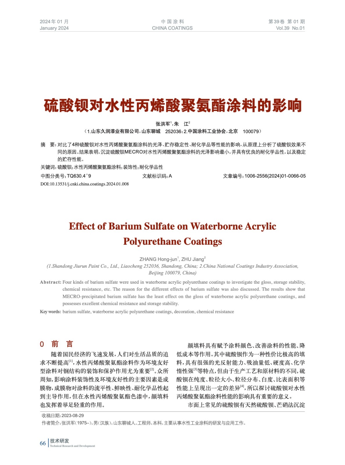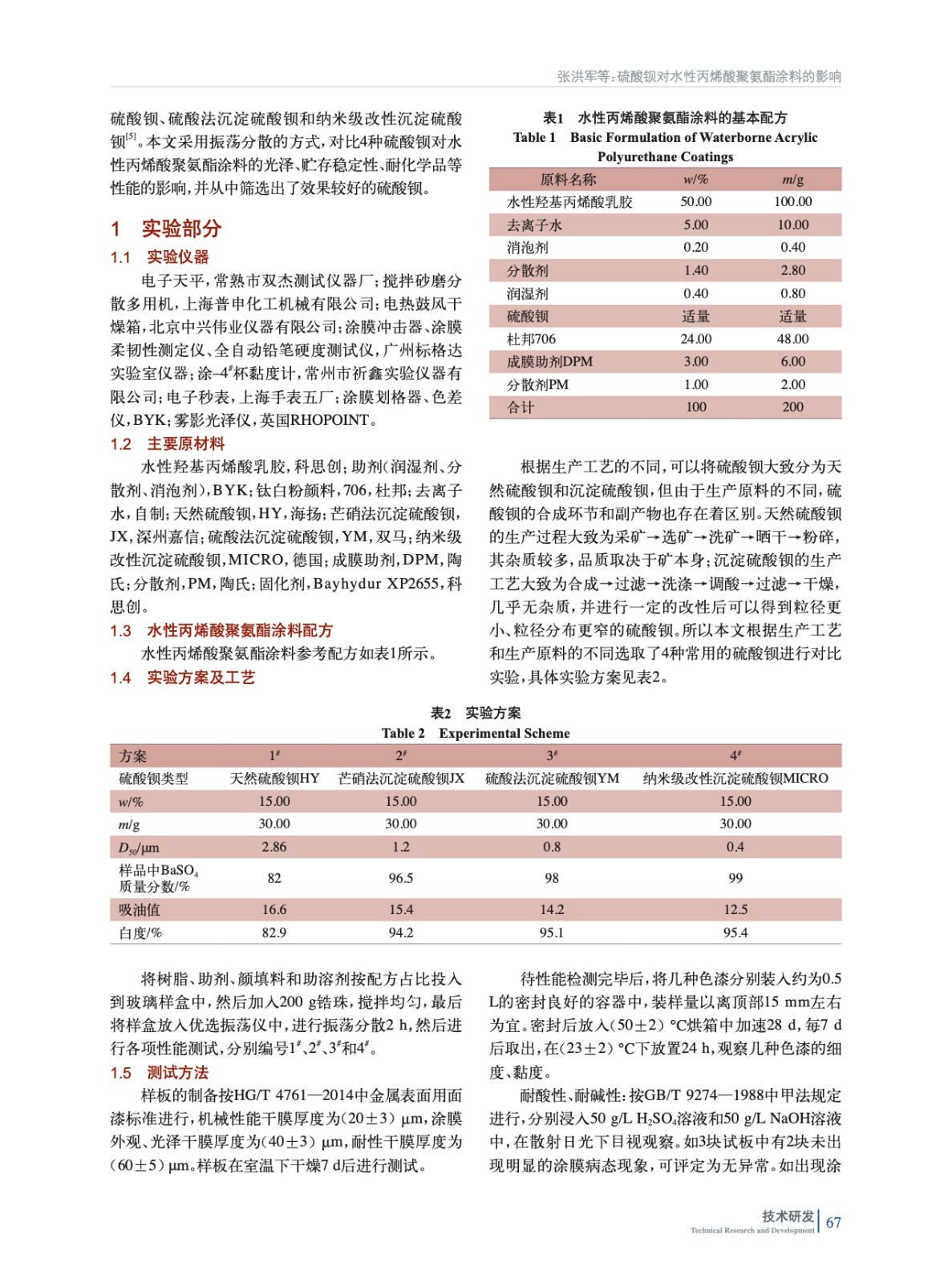 硫酸鋇對水性丙烯酸聚氨酯涂料的影響
