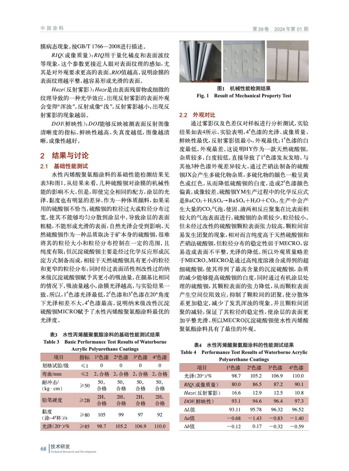 對比了4種硫酸鋇對水性丙烯酸聚氨酯涂料的光澤、貯存穩定性、耐化學品等性能的影響,從原理上分析了硫酸鋇效果不同的原因。結果表明,沉淀硫酸鋇MECRO對水性丙烯酸聚氨酯涂料的光澤影響最小,并具有優良的耐化學品性,以及穩定的貯存性能。