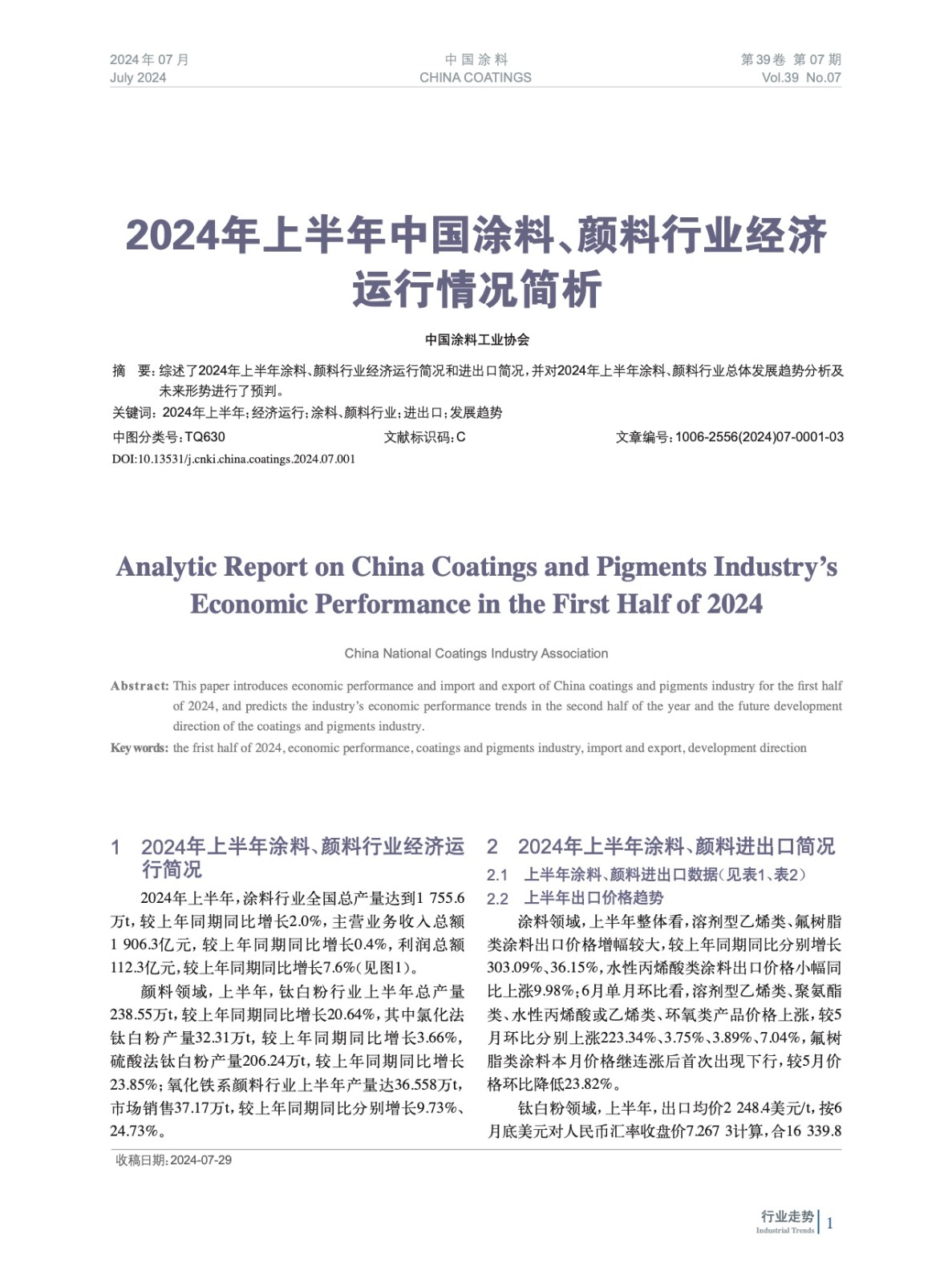 2024年上半年中國涂料、顏料行業(yè)經(jīng)濟(jì)運(yùn)行情況簡(jiǎn)析