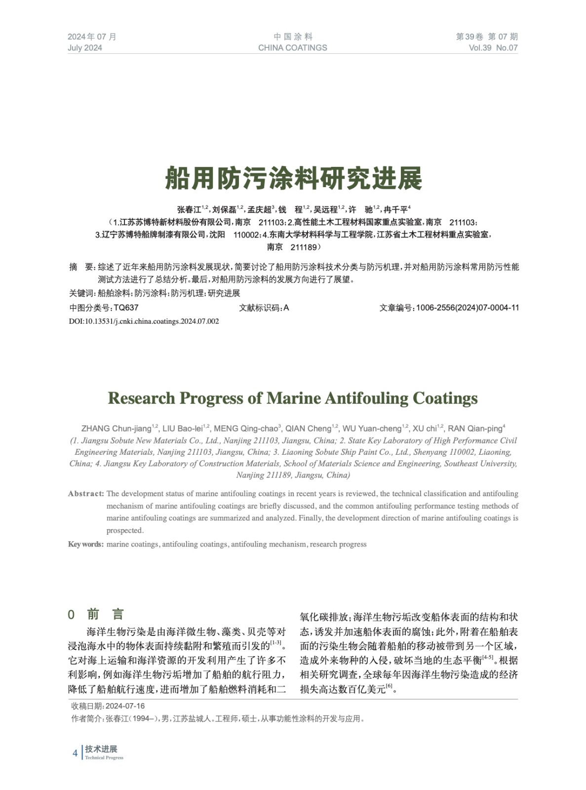 本文系作者@張春江,劉保磊,孟慶超,錢 程,吳遠(yuǎn)程,許 馳,冉千平 授權(quán)中國涂料網(wǎng)發(fā)表,并經(jīng)中國涂料網(wǎng)編輯,未經(jīng)允許不得轉(zhuǎn)載,如需轉(zhuǎn)載請聯(lián)系chinacoatingnet@vip.163.com