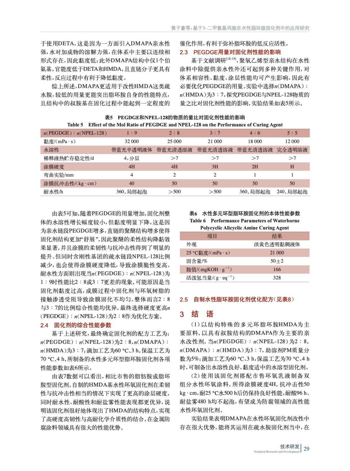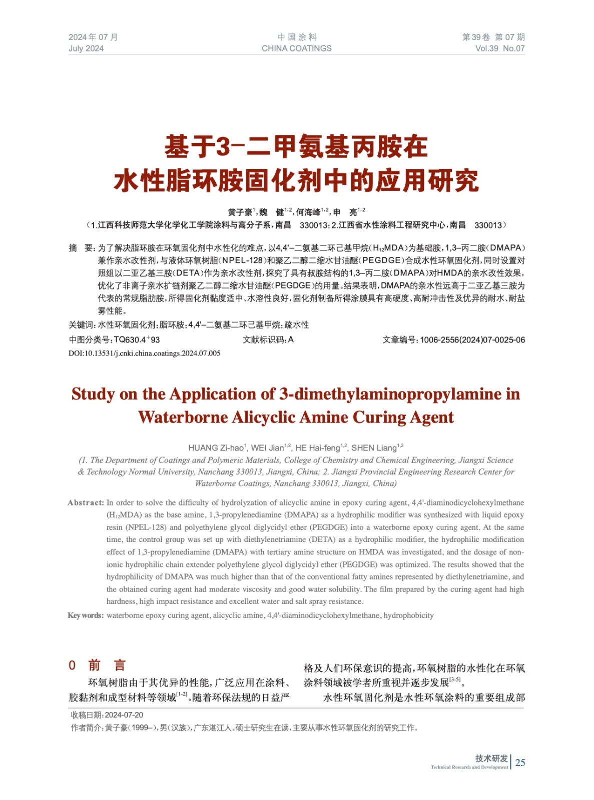 基于3–二甲氨基丙胺在水性脂環胺固化劑中的應用研究