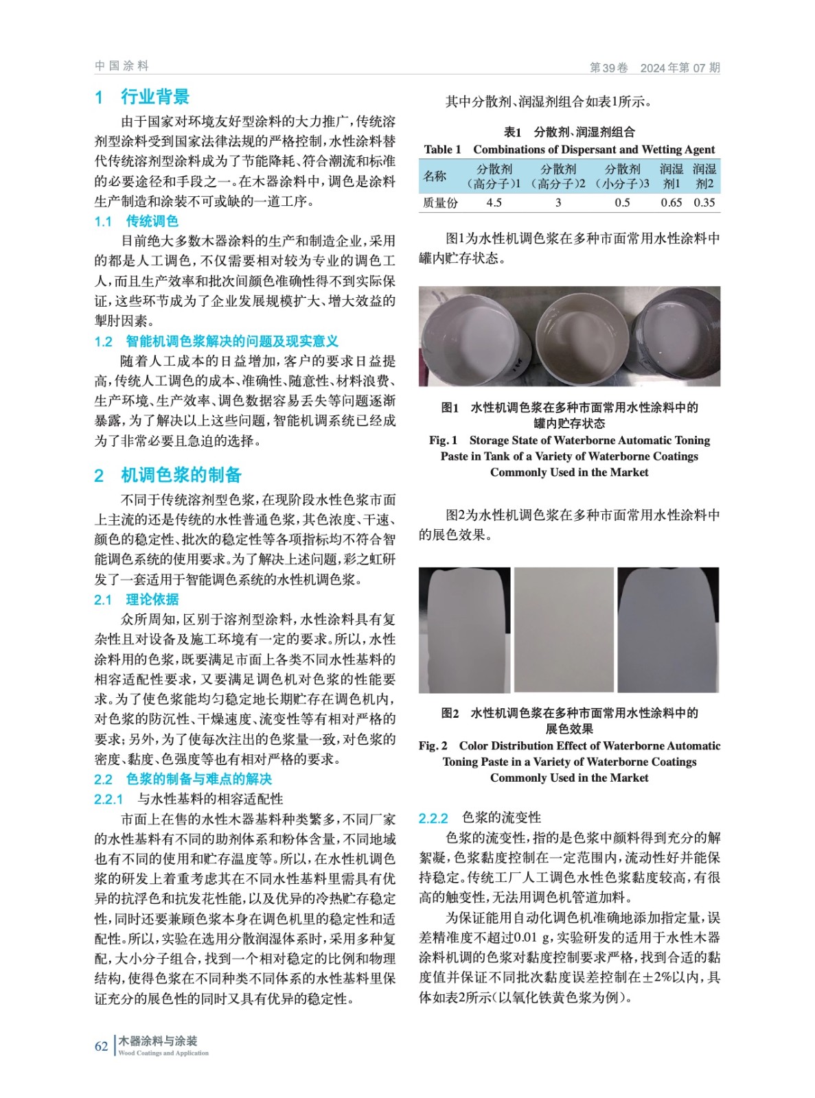簡要分析了水性木器涂料領域傳統調色的痛點難點,分析了水性木器涂料用機調色漿的研發思路和常規色漿的區別與差異,以及智能化機調色漿的應用前景。