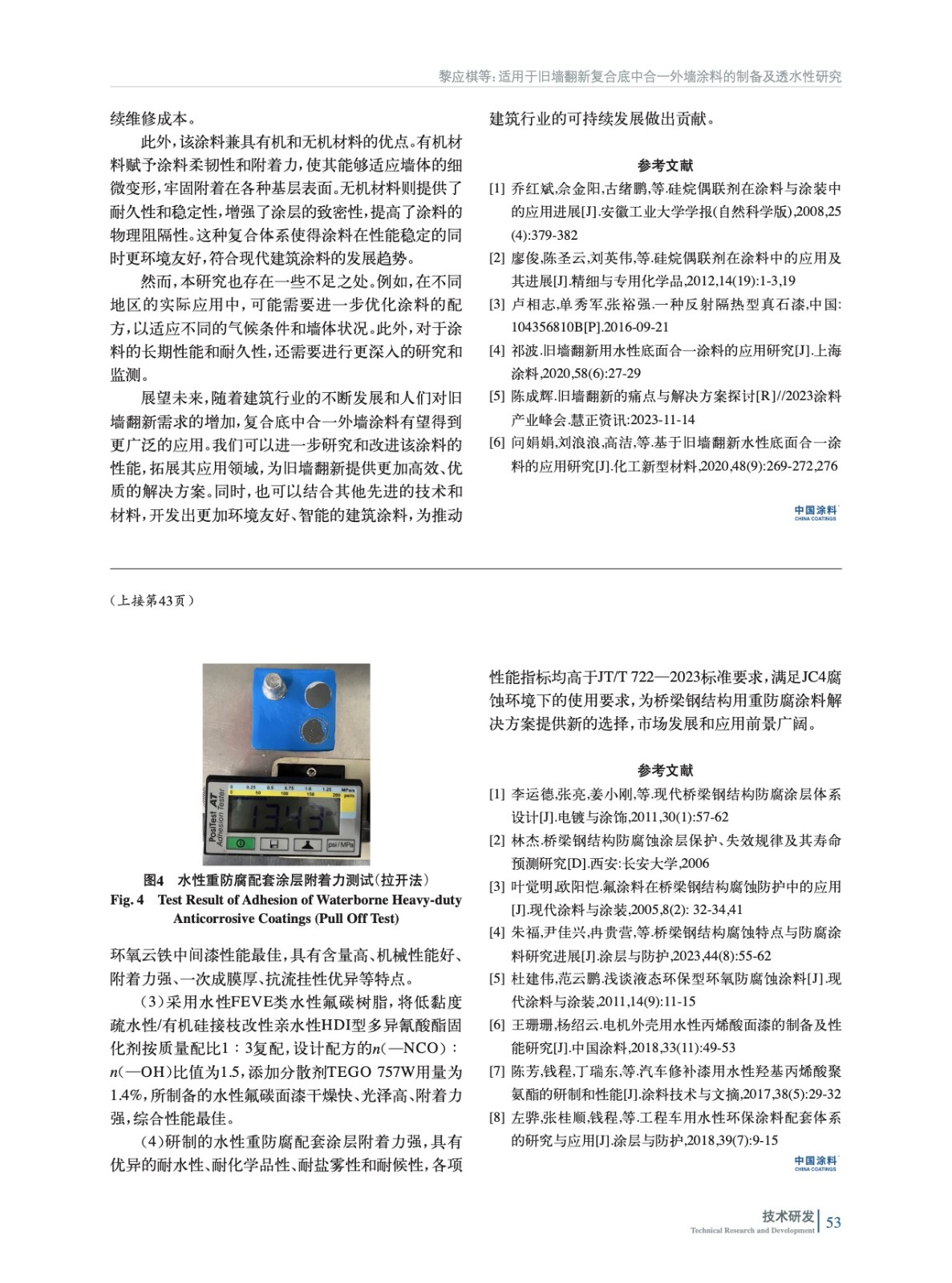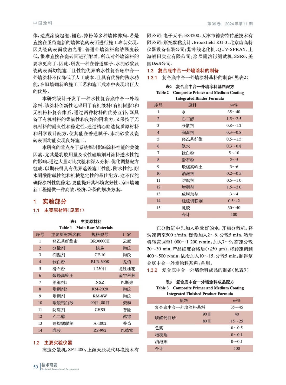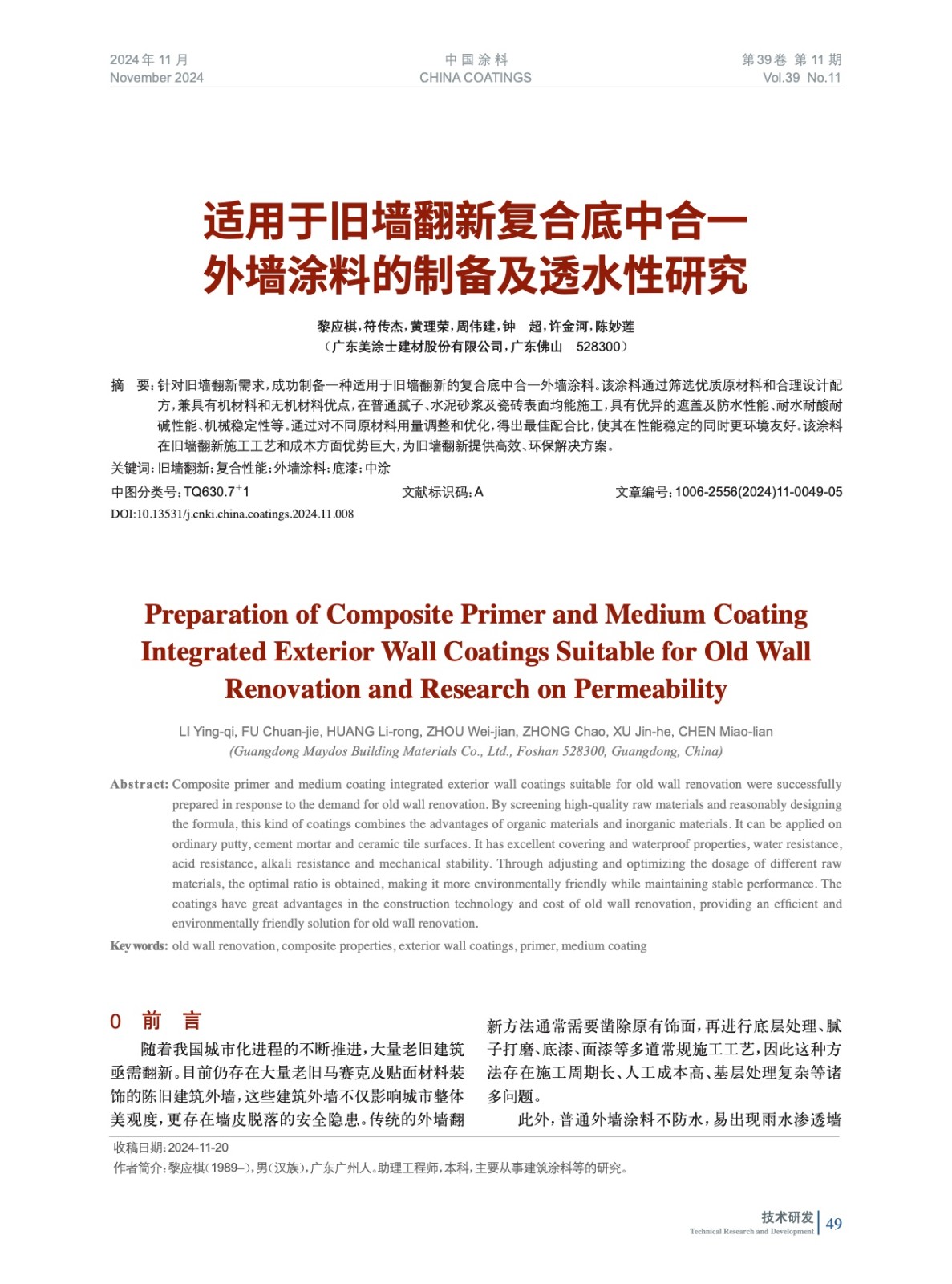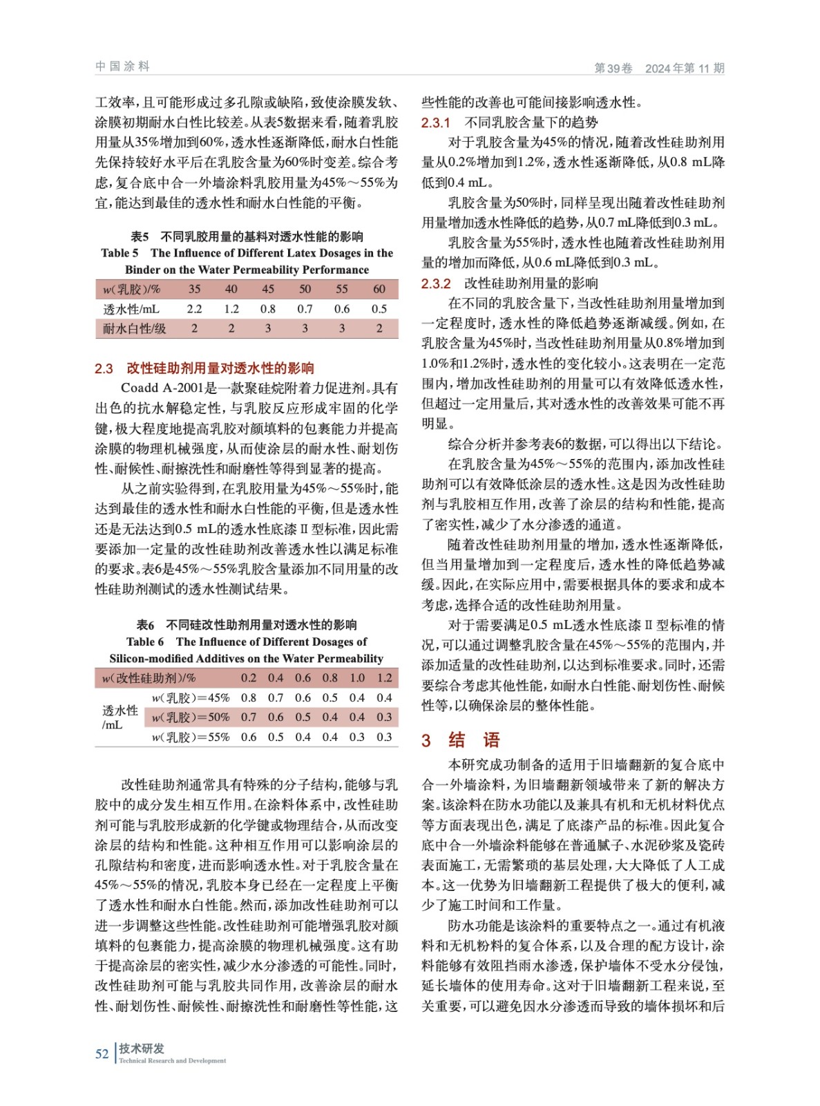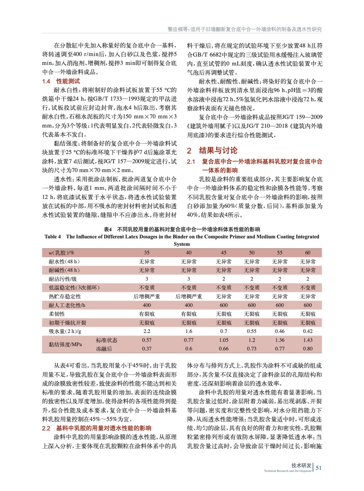 適用于舊墻翻新復合底中合一外墻涂料的制備及透水性研究