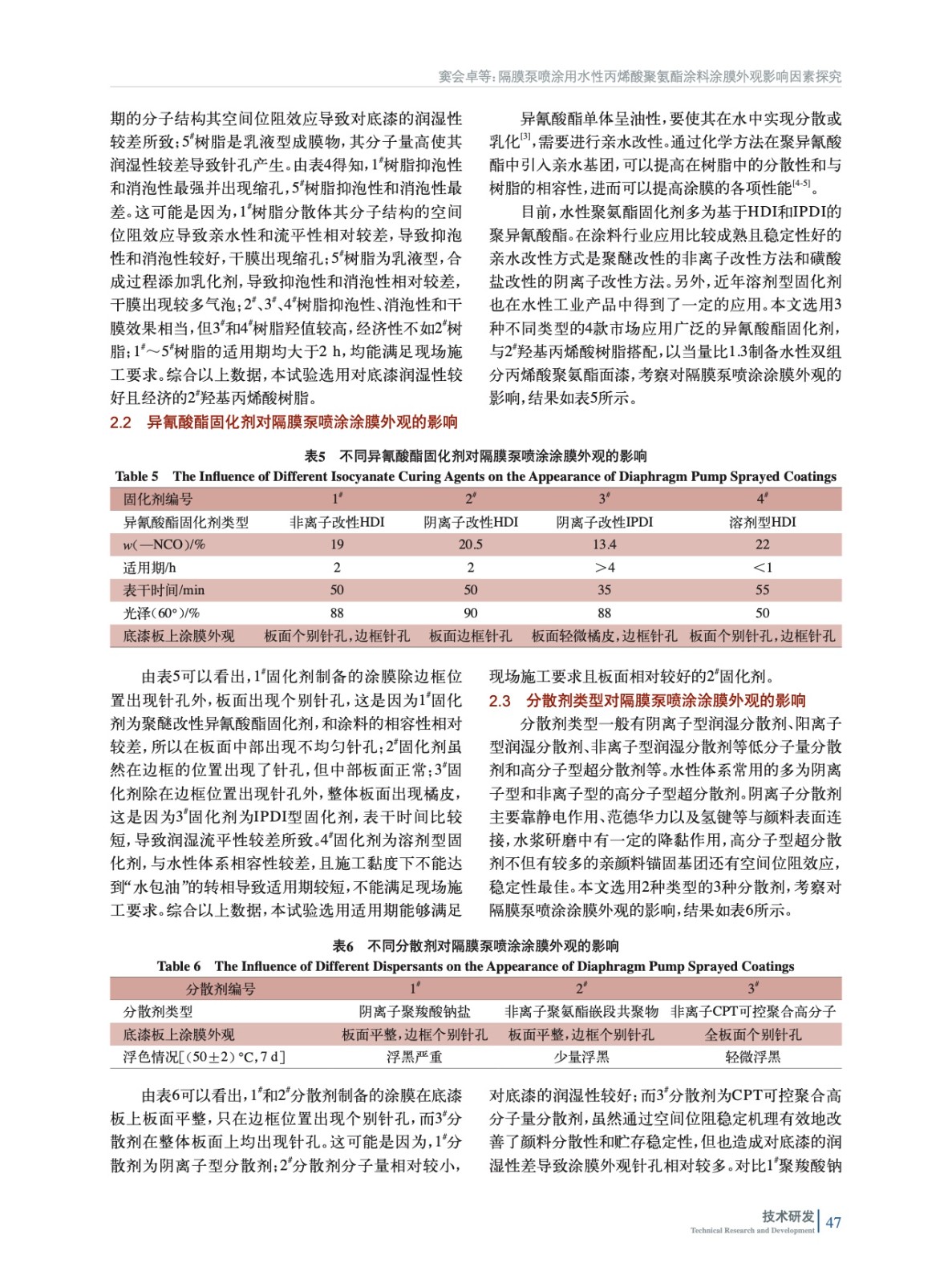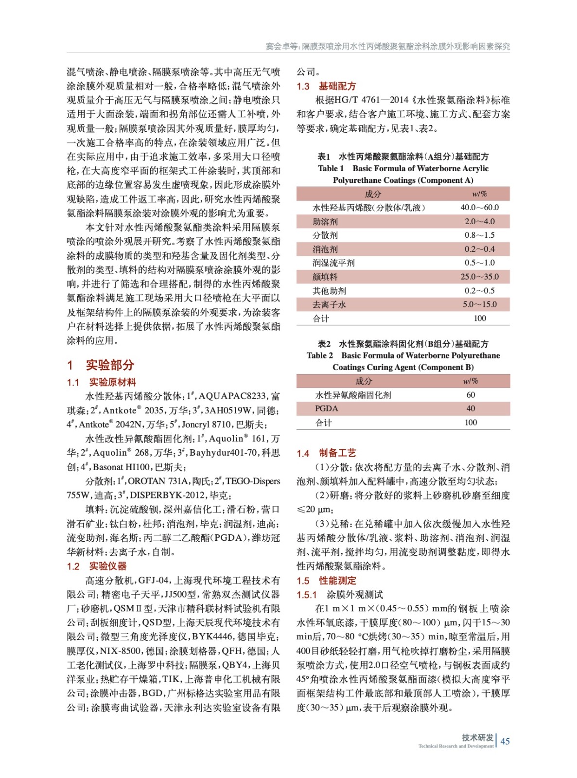 隔膜泵噴涂用水性丙烯酸聚氨酯涂料涂膜外觀影響因素探究