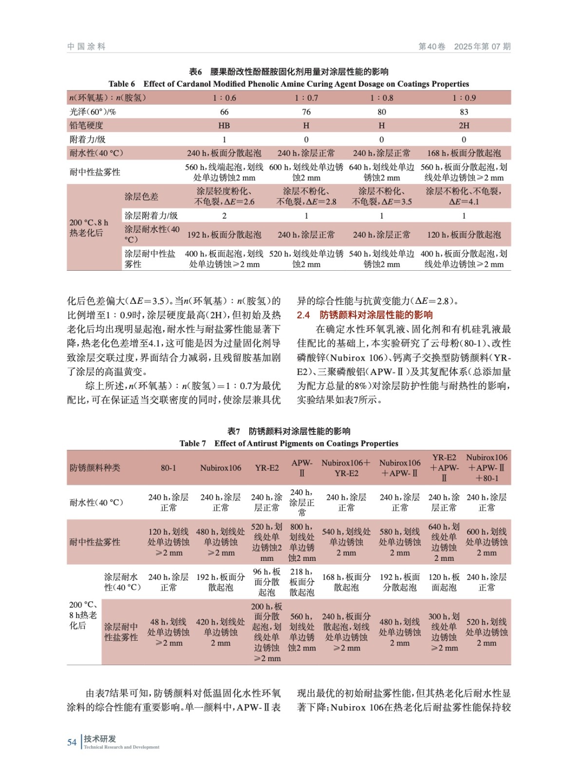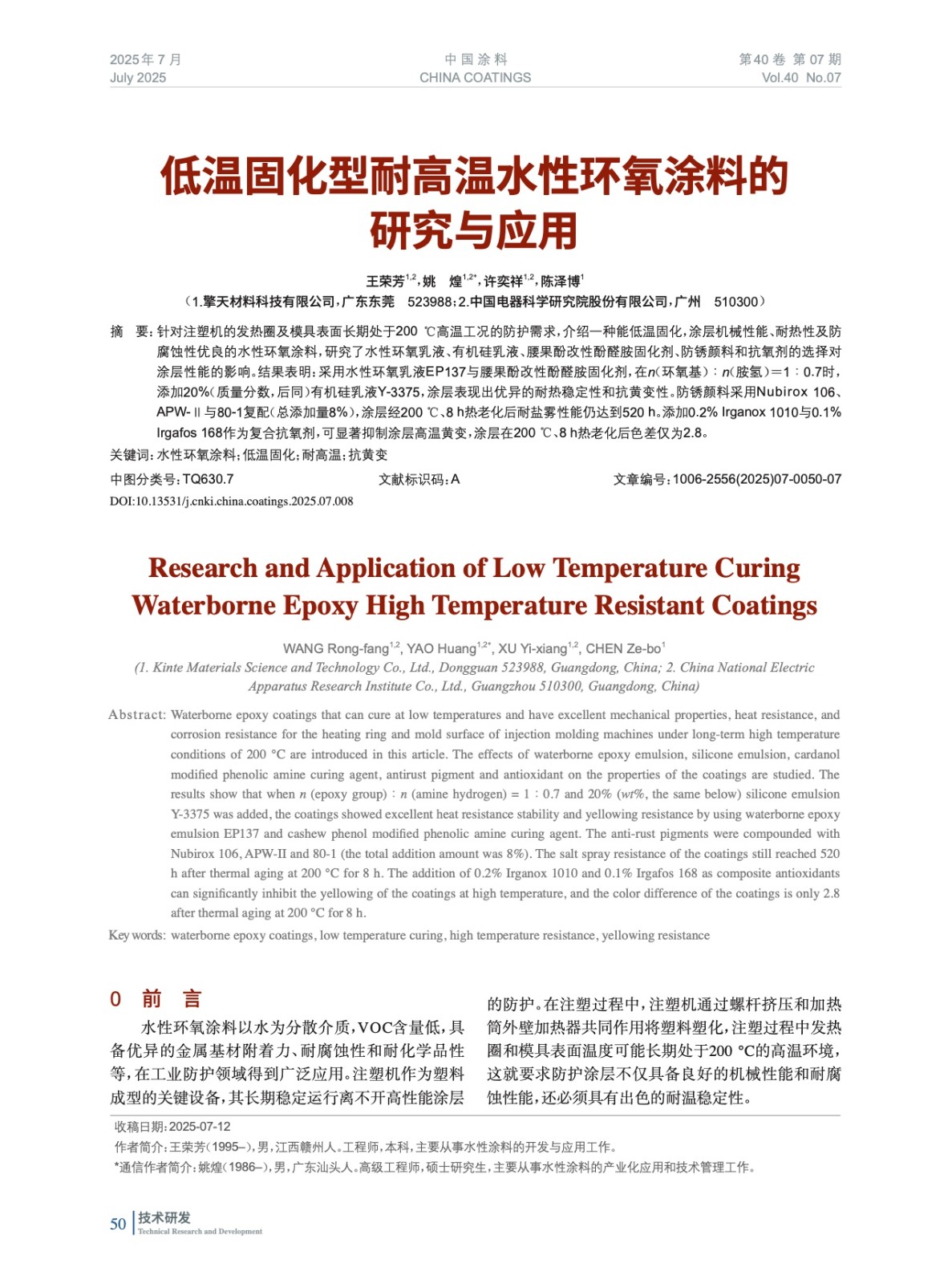低溫固化型耐高溫水性環氧涂料的研究與應用