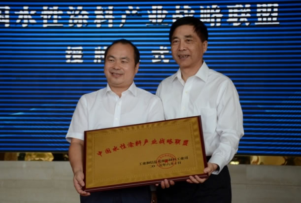 活動現場,國家工信部原材料工業司副司長潘愛華為中國水性涂料產業戰略聯盟進行授牌,這標志著我國首個水性涂料產業戰略聯盟的正式成立。該聯盟將以“推動水性涂料行業的技術進步和產業化”為宗旨,開展學術交流,對制約行業發展的重大難題和關鍵技術進行聯合攻關,帶動中國相關行業和產業自主創新能力和競爭力的全面提升。同時,在現場數百同行業者的見證下,聯盟理事長楊元一和晨陽水漆董事長劉善江還對聯盟各理事長單位、理事單位、成員單位進行了授牌儀式,昭示著聯盟基礎組織架構的搭建完成。