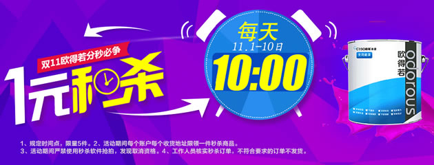 除此之外,活動期間晨陽水漆還有“全場無門檻禮券免費送”、“特權定金,10元抵100元”、“轉盤抽獎”等活動。11月1-10日,更有每天上午10時整的“1元秒殺”活動,每天10時、14時、20時三個整點開搶“10元搶300元免單券”等系列活動,先到先得,搶完即止。