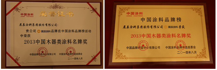 展辰涂料榮獲“2013中國(guó)木器類涂料名牌獎(jiǎng)”