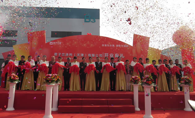 君子蘭涂料(天津)有限公司新廠開業(yè)典禮在2014年10月15日上午隆重舉行,來自中國(guó)涂料協(xié)會(huì)、木門協(xié)會(huì)和君子蘭集團(tuán)上海、成都、廣東等分公司君子蘭人歡聚一堂、共襄盛舉,共同慶祝君子蘭涂料(天津)有限公司隆重開業(yè)。