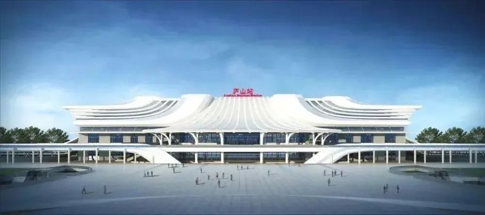 2022年4月底,九江市首座高鐵站——廬山站西站房正式開通運營。站臺設計融入廬山云霧和山水的柔美形態,色彩明快,意境唯美,與遠處的自然景觀遙相呼應,于山影水語間大放異彩!