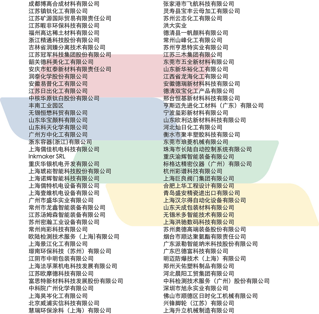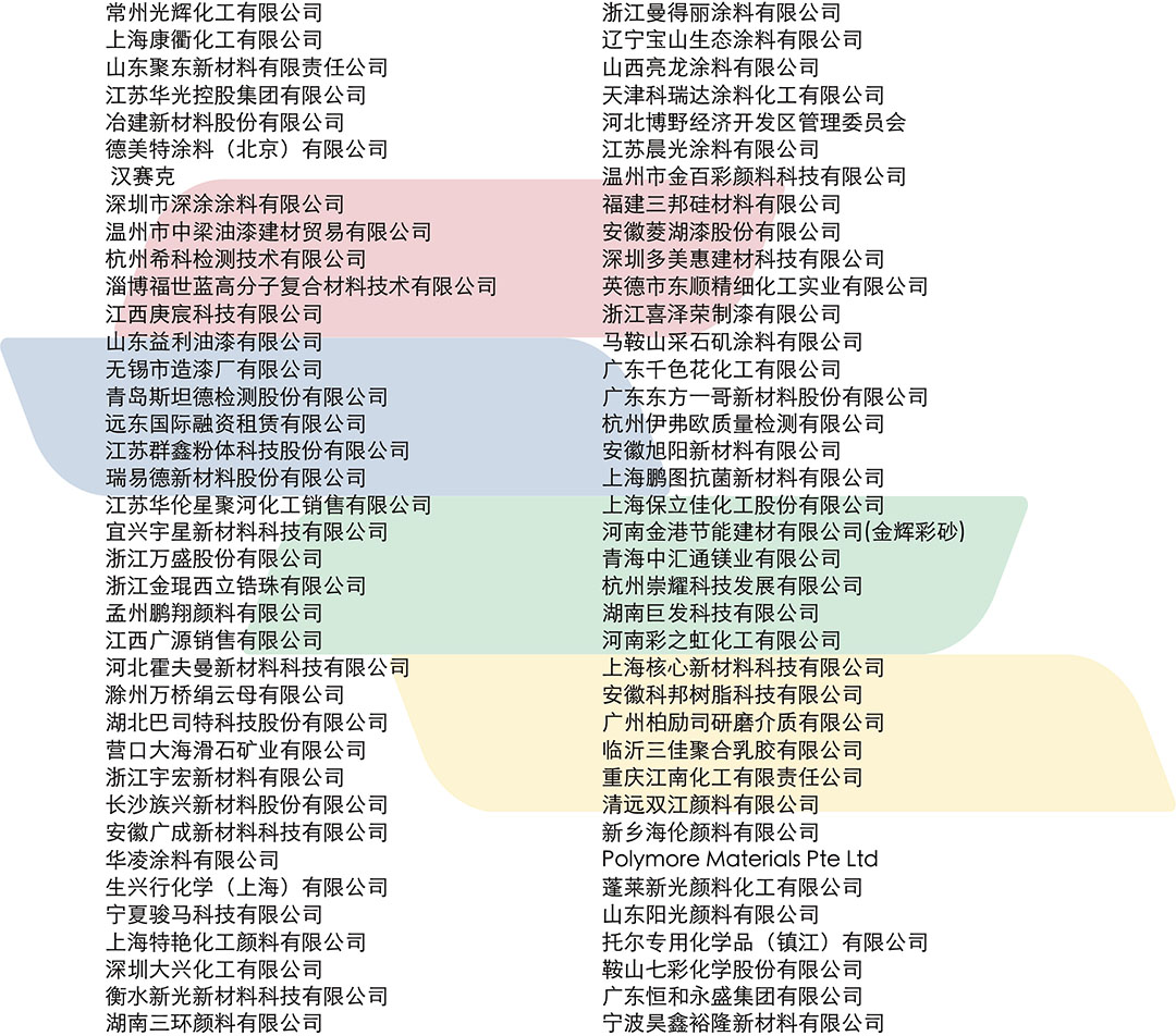 同時也得到了世界涂料理事會(WCC)、亞洲涂料工業理事會(APIC)、歐洲涂料、印刷油墨和藝術顏料制造商理事會(CEPE)、美國涂料協會(ACA) 法國涂料協會(FIPEC)、英國涂料協會(BCF)、日本涂料協會(JPMA)、德國涂料協會、越南涂料協會等國外合作機構的鼎盛支持。