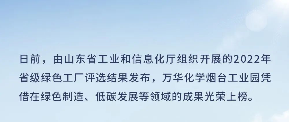 綠色工廠|萬華化學煙臺工業(yè)園獲評2022山東省綠色工廠