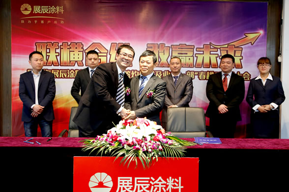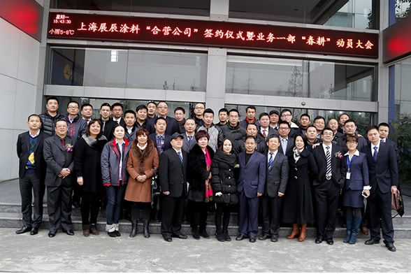新年伊始、萬象更新。2015年2月2日下午,上海展辰涂料有限公司與三大合營公司正式舉行簽約儀式。董事長陳冰,輪值總裁劉順、輪值總裁孫金平等領(lǐng)導(dǎo)攜集團中心各部門負(fù)責(zé)人及上海展辰業(yè)務(wù)一部全體經(jīng)銷商齊聚一堂,共襄盛舉。