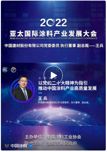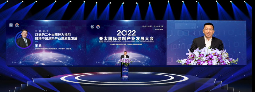 大會期間,中國建材股份有限公司黨委委員/執(zhí)行董事/副總裁王兵帶來《以黨的二十大精神為指引推動中國涂料產業(yè)高質量發(fā)展》的精彩演講。他表示,2022亞太國際涂料產業(yè)發(fā)展大會召開的節(jié)點十分關鍵。