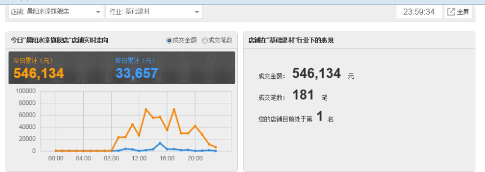 5月6日,正值晨陽集團(tuán)17周年慶之際,為答謝廣大消費者的厚愛,晨陽水漆開展了規(guī)模浩大的感恩回饋活動。天貓晨陽水漆旗艦店單店日銷售額近55萬元;而天貓網(wǎng)絡(luò)平臺當(dāng)日銷售額突破百萬,是當(dāng)日天貓涂料品類銷售額第一名,同時創(chuàng)下天貓有史以來民族涂料品牌理想戰(zhàn)績,這預(yù)示著民族涂料品牌的“逆襲”之戰(zhàn)已經(jīng)開啟。