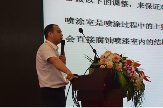 來自廣東科霖環保設備有限公司的曾廣采經理做了《低VOC環境下涂裝一體化的解決方案》報告。曾經理就國家的環保要求拓展開,闡述了新近推行的《木制家具制造業大氣污染物排放標準》的概況,特別指出《標準》連對廠區邊界、車間工位等無組織VOC地區都限定了排放標準,未來的生產環境將尤為嚴格。曾經理還就水性木器涂料的自然干燥問題做了分析總結,推薦了具有干燥快速、能耗較低、效率較高三大優點的微波干燥技術。